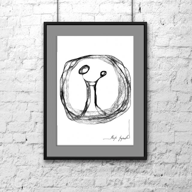 Grafika wykonana techniką mieszaną na papierze białym FABRIANO. Format 30x21cm - (dostępny również format 40x30 cm - cena do uzgodnienia). Grafika oprawiona - czarna, satynowa, aluminiowa rama oraz grafitowe passe partout. Termin realizacji zamówienia to 1-3 dni. Limitowana seria.