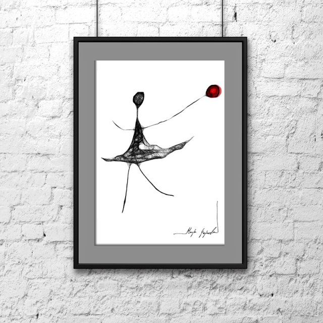 Grafika wykonana techniką mieszaną na białym, matowym o lekko fakturowanej powierzchni, graficznym papierze Canson 160g. Gwarancja jakości w czasie długotrwałego przechowywania. Format 40x30 cm. Praca jest oprawiona - czarna, aluminiowa, satynowa rama oraz grafitowe passe partout. Gotowa do powieszenia na ścianie.