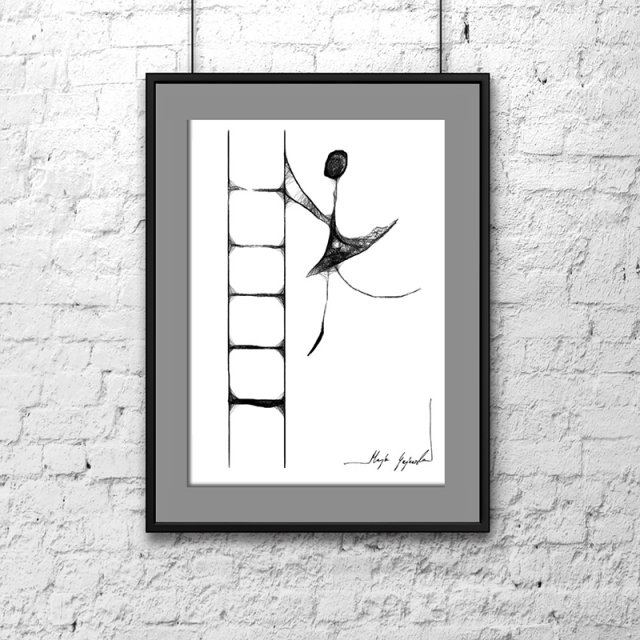 Grafika wykonana techniką mieszaną na białym, matowym o lekko fakturowanej powierzchni, graficznym papierze Canson 160g. Gwarancja jakości w czasie długotrwałego przechowywania. Format 40x30 cm. Praca jest oprawiona - czarna, aluminiowa, satynowa rama oraz grafitowe passe partout. Gotowa do powieszenia na ścianie.