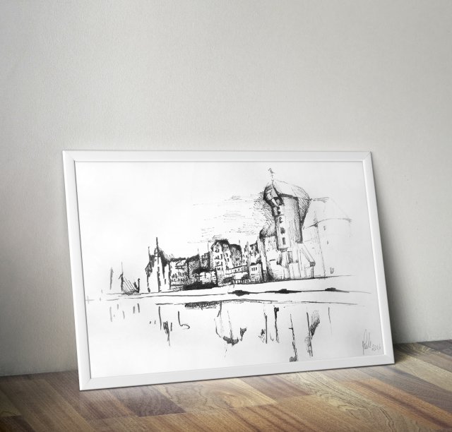 Piękna nowoczesna grafika przedstawiająca Gdańsk.