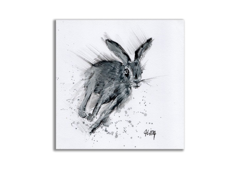 Obraz ręcznie malowany, wykonany w technice mieszanej; na białym, wysokogatunkowym papierze.