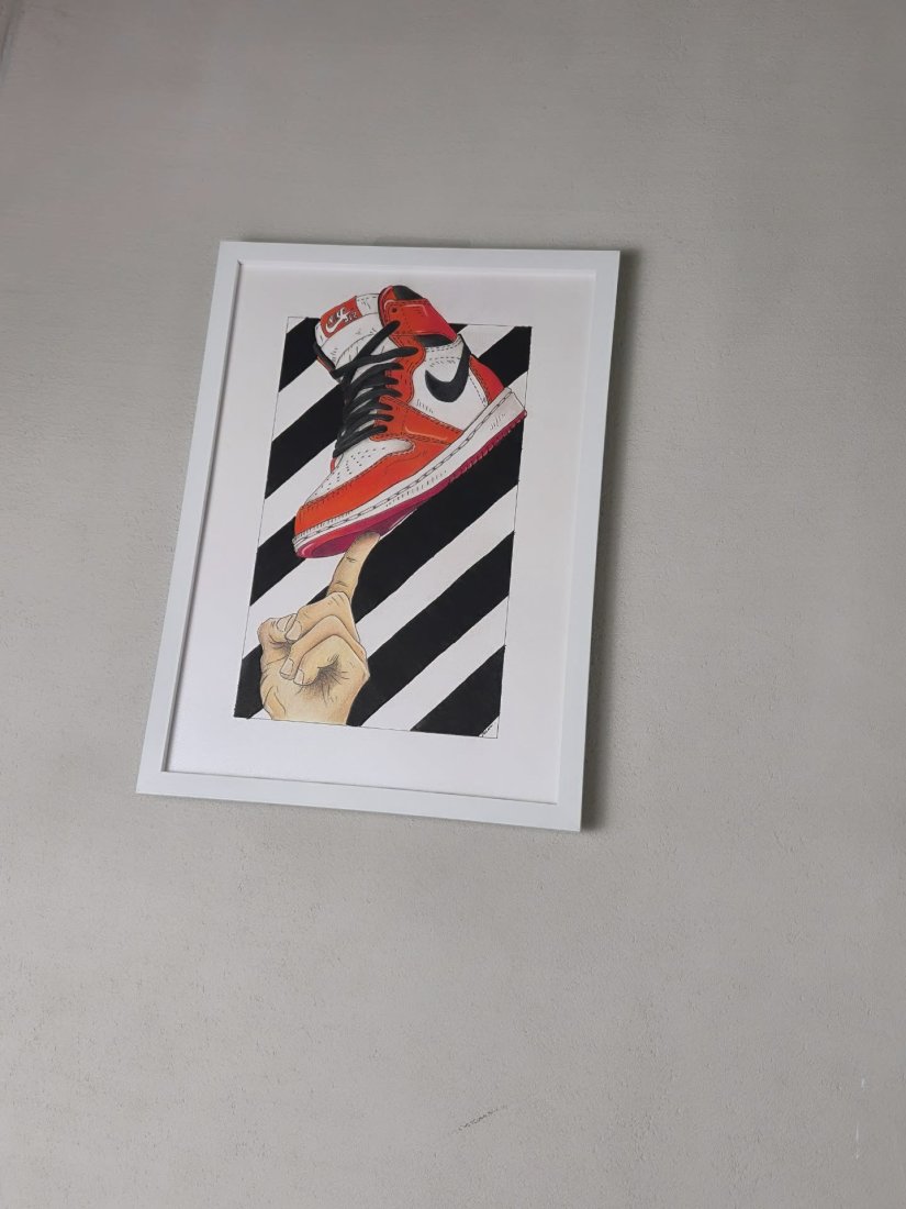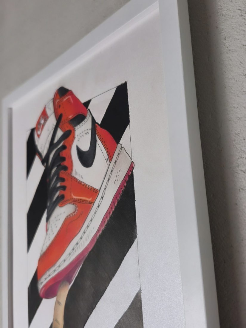 Praca ispirowana kultowymi sneakersami Nike Air Jordan oraz estetyką street artu.