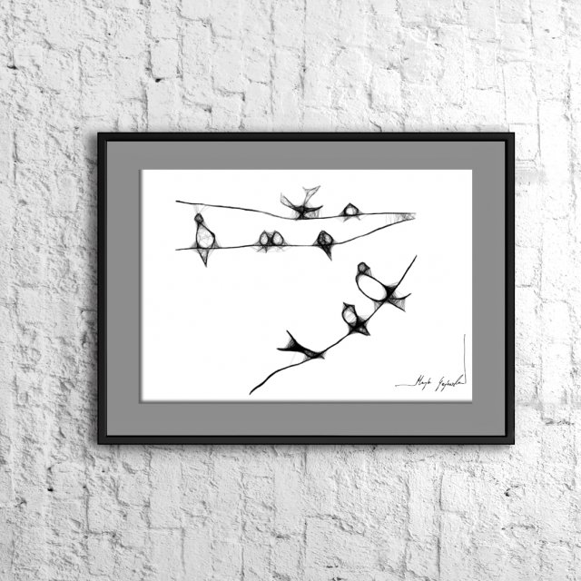 Grafika wykonana techniką mieszaną na papierze białym FABRIANO. Format 30x21cm. Grafika oprawiona - czarna, satynowa, aluminiowa rama oraz grafitowe passe partout. Termin realizacji zamówienia to 1-3 dni. Limitowana seria.