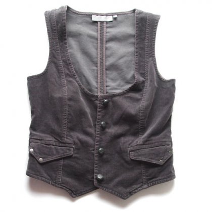 Kamizelka z ciemnografitowego sztruksu w drobne prążki. Zapinana na guziki. Z przodu dwie małe kieszonki. Rozmiar 34. Stan bardzo dobry. Marka KappAhl.