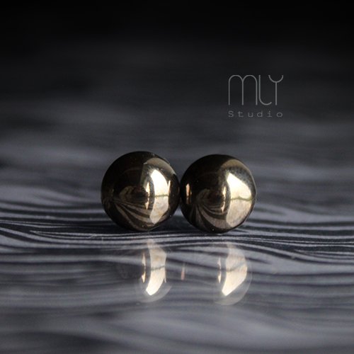 Oryginalne ceramiczne kolczyki w formie sztyftów, ręcznie wykonane z delikatnej gliny kamionkowej, jednostronnie szkliwione błyszczącym metalicznym szarym szkliwem z efektem drobnych plamek, na antyalergicznych sztyftach w kolorze srebrnym. Średnica ok 11mm. Polecam
