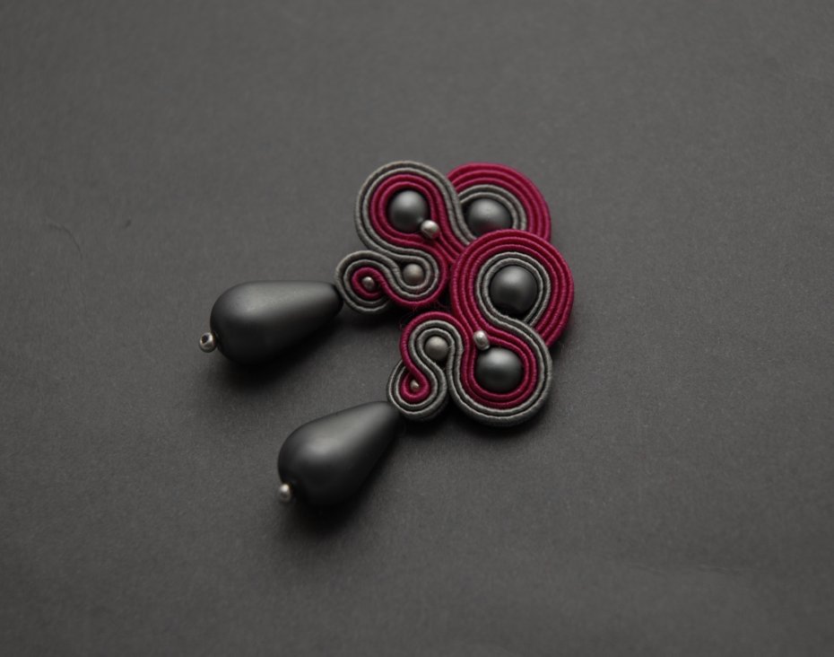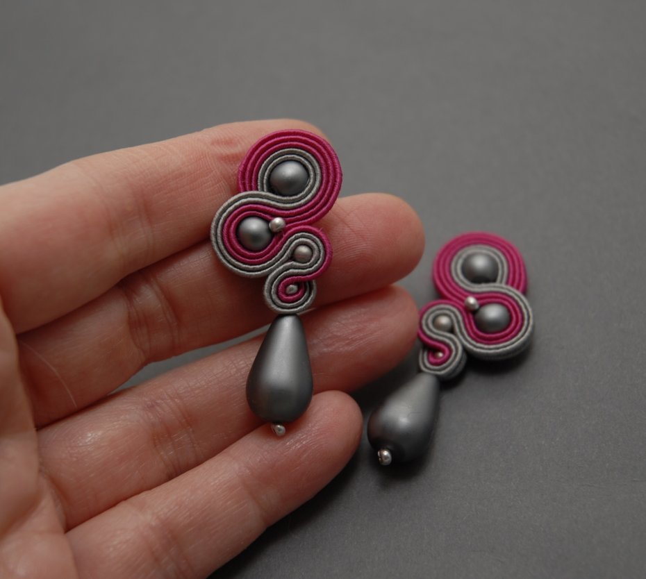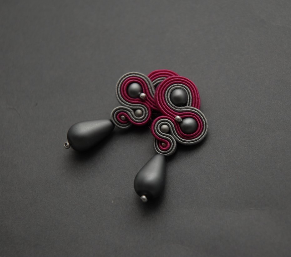oferuję kolczyki zrobione haftem sutasz, ozdobione koralikami