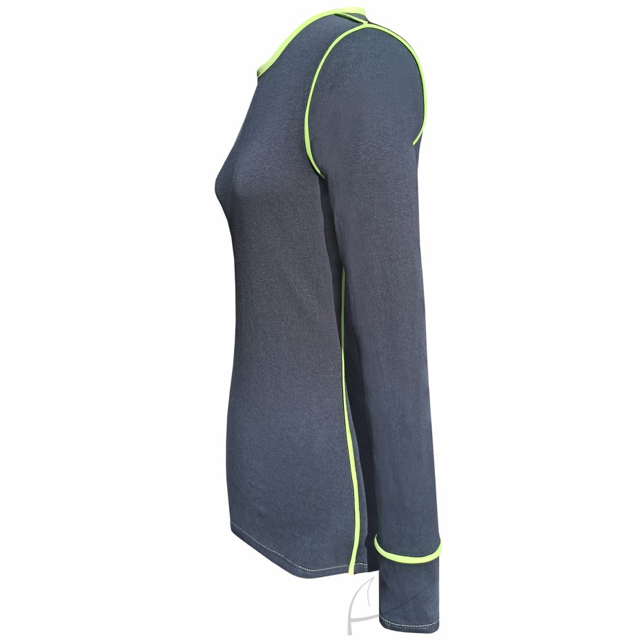 Projekt: top z okrągłym dekoltem i wąskim rękawem.