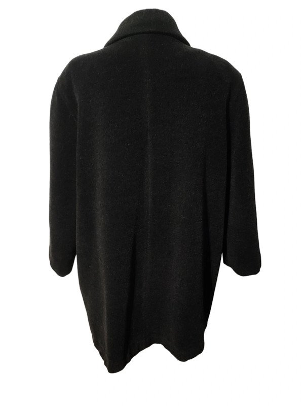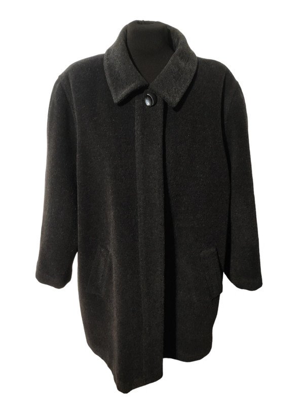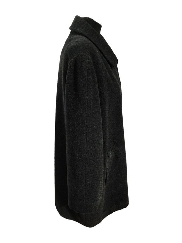 Luksusowy płaszcz premium w klasycznym grafitowym kolorze, wykonany z wysokogatunkowej mieszanki naturalnej wełny, kaszmiru i angory. Miękki, ciepły i przyjemny w dotyku – idealny na jesień i zimę. Krój typu oversize w trapezowej formie pięknie układa się na sylwetce, zapewniając komfort i elegancję jednocześnie.