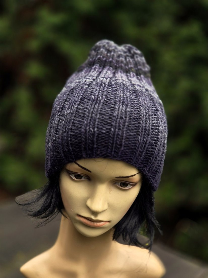 Ciepła i miękka czapa wykonana ręcznie na drutach z włoskiej włóczki (53% wełna, 47% akryl), przyjemna w dotyku. Czapka jest bezszwowa.