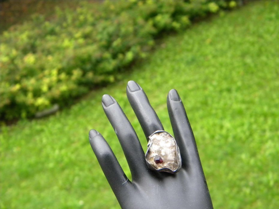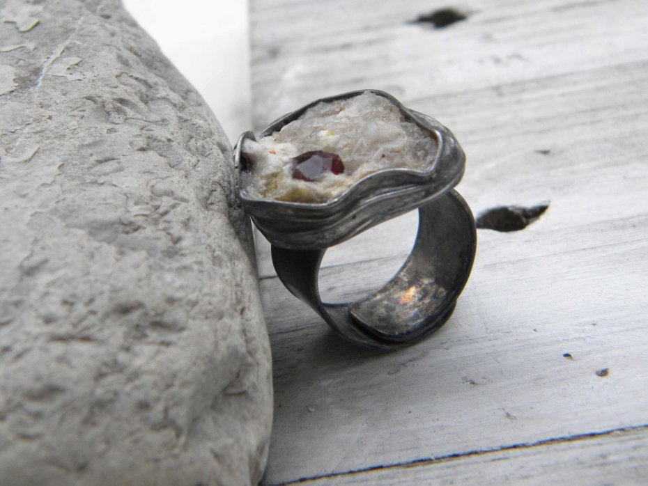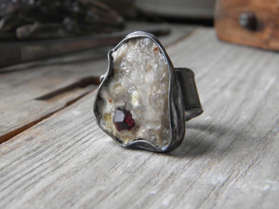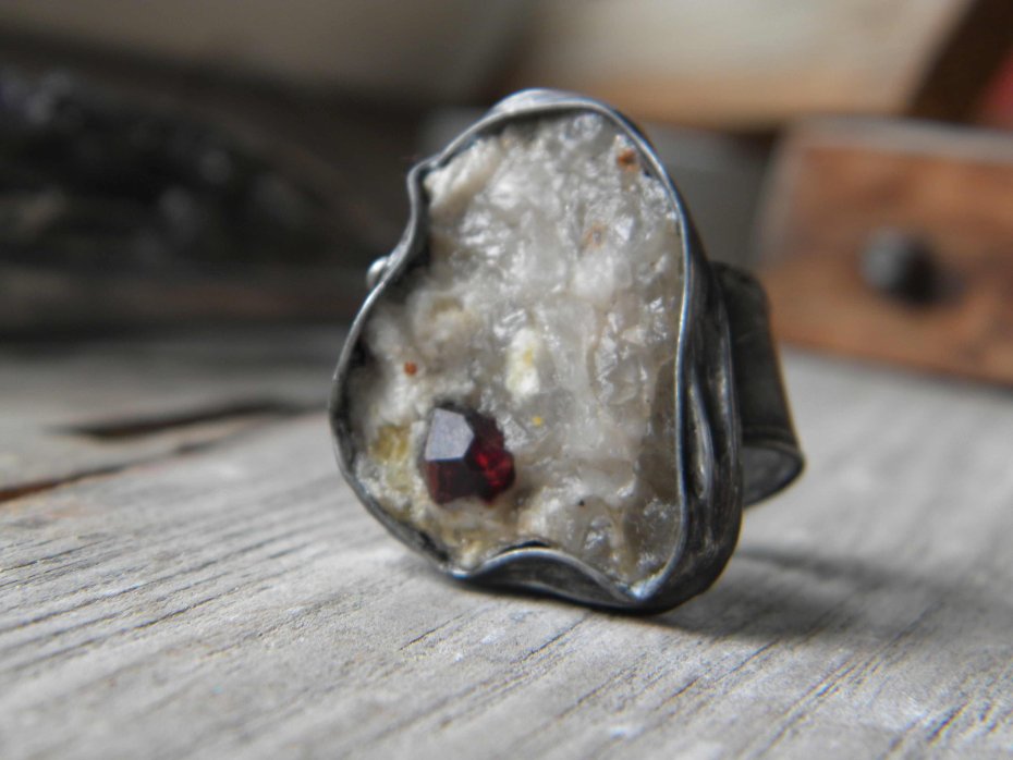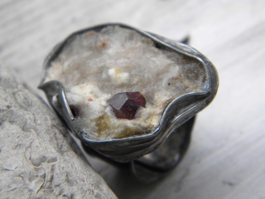 surowy kryształ granatu w kwarcycie w oprawie z ocynowanej miedzi