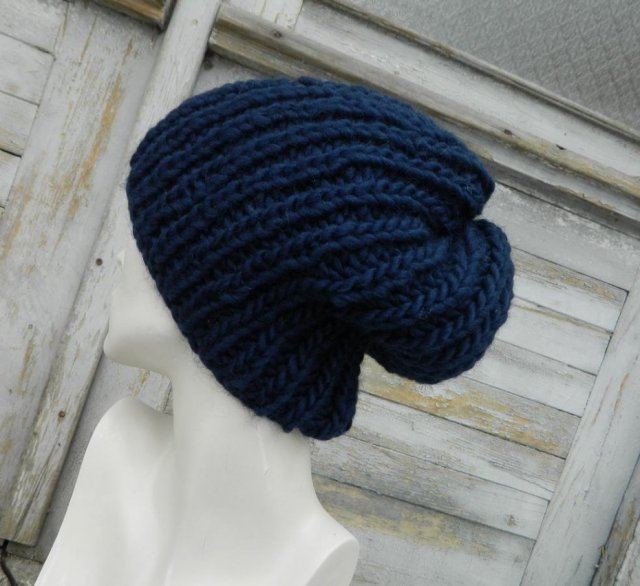 Mega grubaśna czapa UNISEX w kolorze ciemnego granatu. Wydziergałam ją z dobrej gatunkowo 100% angielskiej wełny. Jest bardzo ciepła, mięsista i jak na wełnę setkę przyjazna w dotyku. Mięsisty ścieg powoduje, że czapa jest "obfita", dużo jej na głowie i wokół twarzy, jest DUŻO grubsza od każdej przeciętnej czapki. Fason lekko wydłużony, świetnie układa się na każdej głowie.
