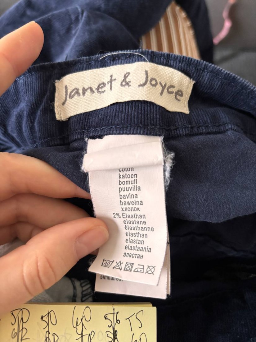 Spódnica sztruksowa Janet & Joyce w kolorze granatowym, długość midi. Wykonana z miękkiego, oddychającego sztruksu (98% bawełna, 2% elastan), który delikatnie się rozciąga i dopasowuje do sylwetki. Klasyczny krój ze szlufkami, kieszeniami i rozcięciem z tyłu zapewnia komfort noszenia. Idealna na jesień i zimę — świetnie wygląda z golfami, swetrami i kozakami.