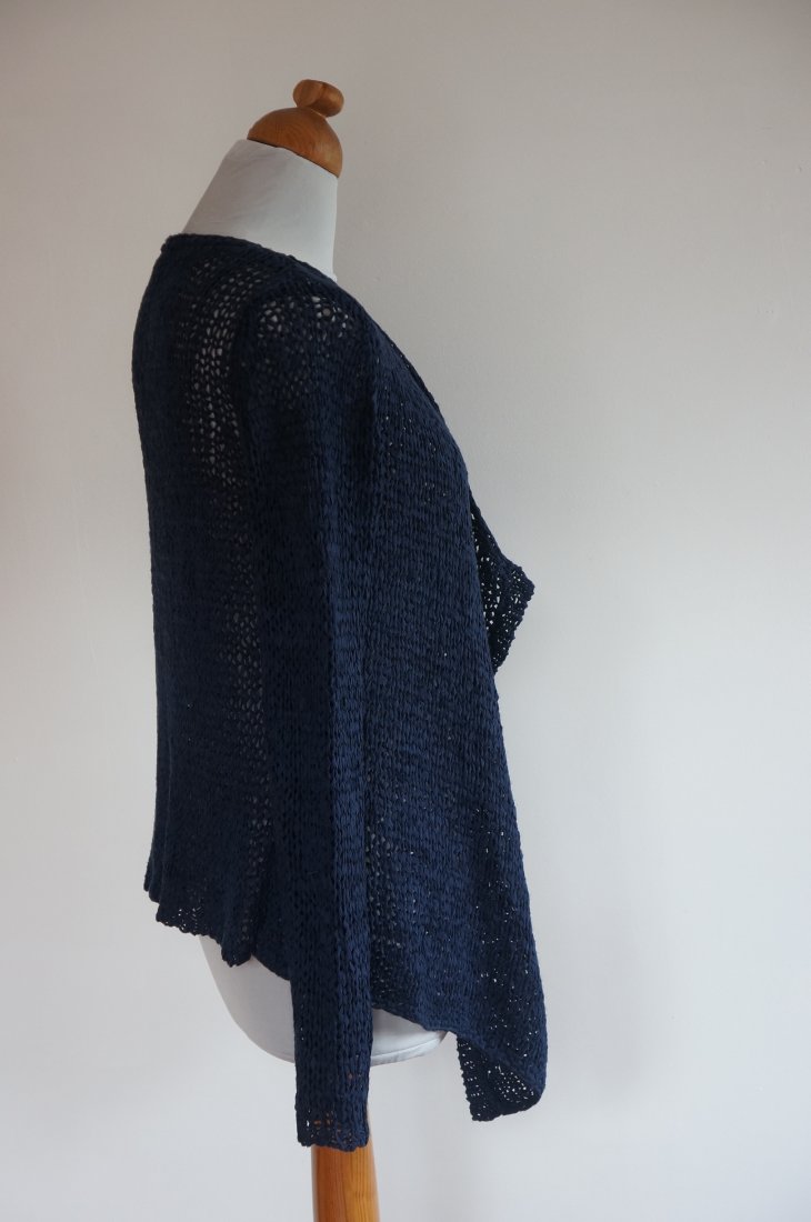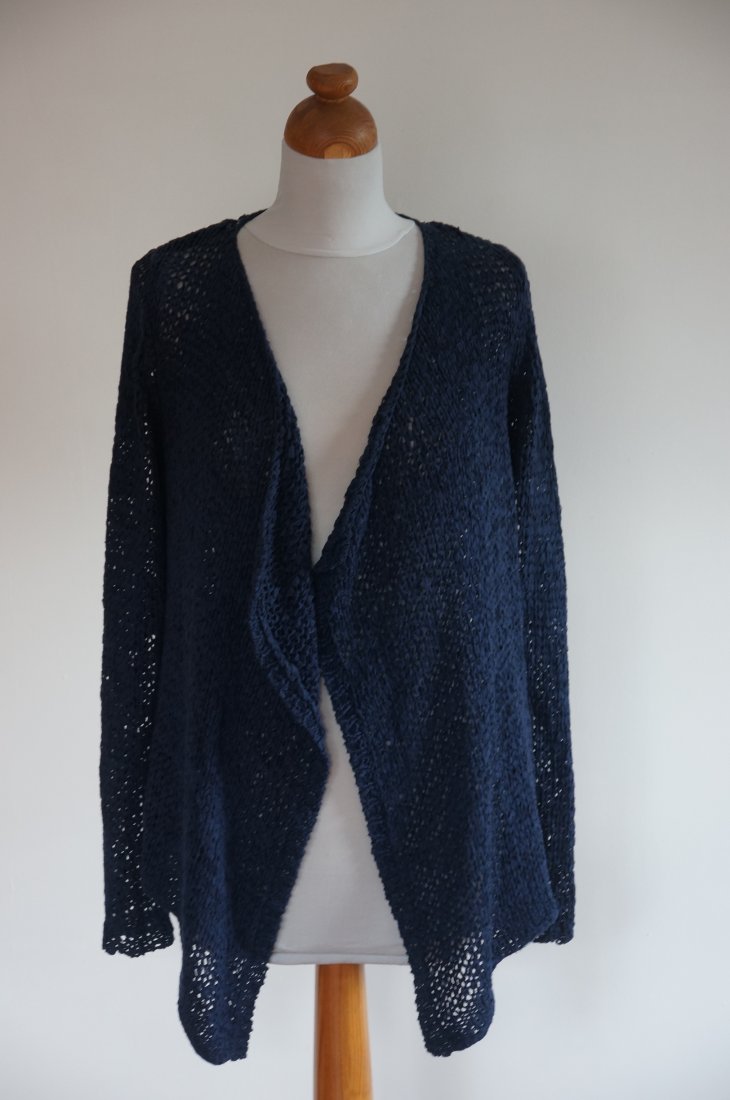 Sweter/wdzianko marki Esprit. Przód puszczony luzem /brak zapięcia/ jest dłuższy od boku. Włóczka syntetyczna. Stan bardzo dobry.