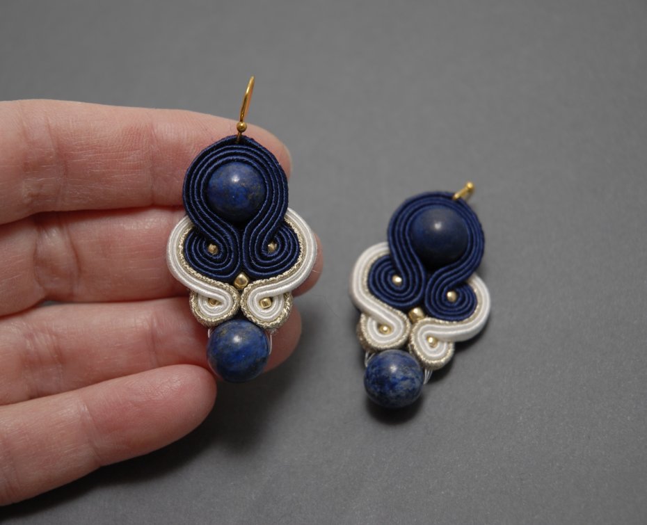 Oferuję kolczyki zrobione techniką sutasz, ozdobione chryzokolą i drobnymi koralikami
