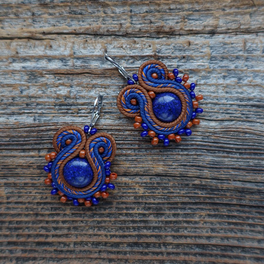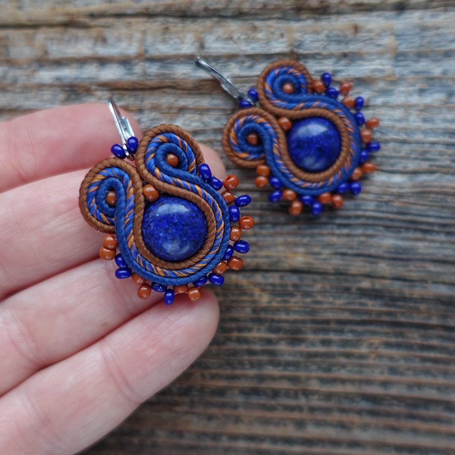 Niewielkie, a pełne charakteru. Intensywny granat lapis lazuli pięknie łączy się tutaj z ciepłymi odcieniami sznurków, tworząc kompozycję, która przyciąga wzrok i dodaje stylizacjom wyrazistości.