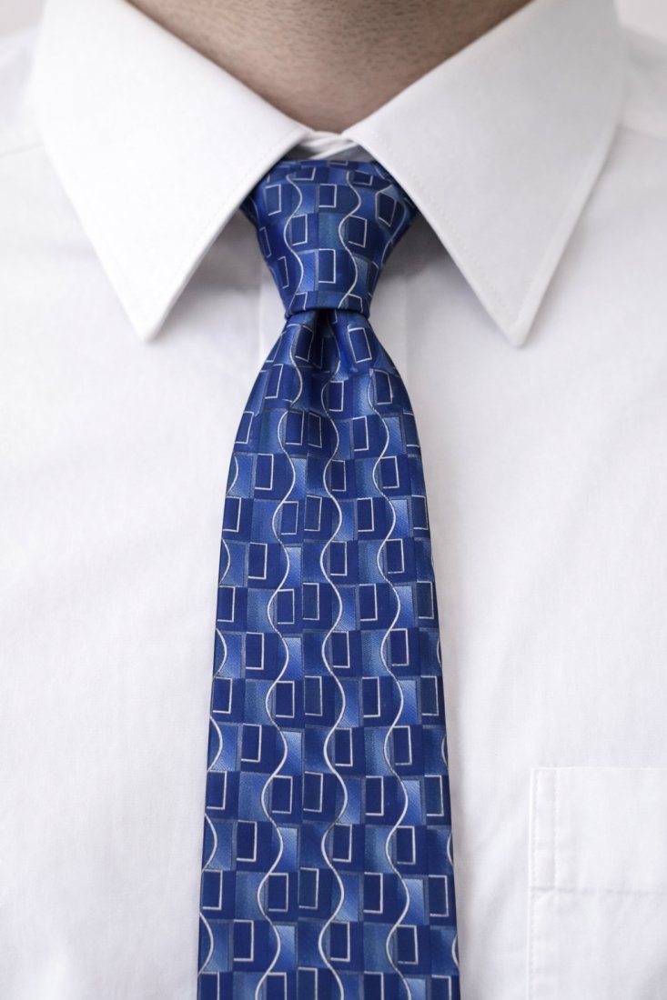 Granatowy Krawat w Geometryczny Wzór – Elegancki Styl Klasyczny