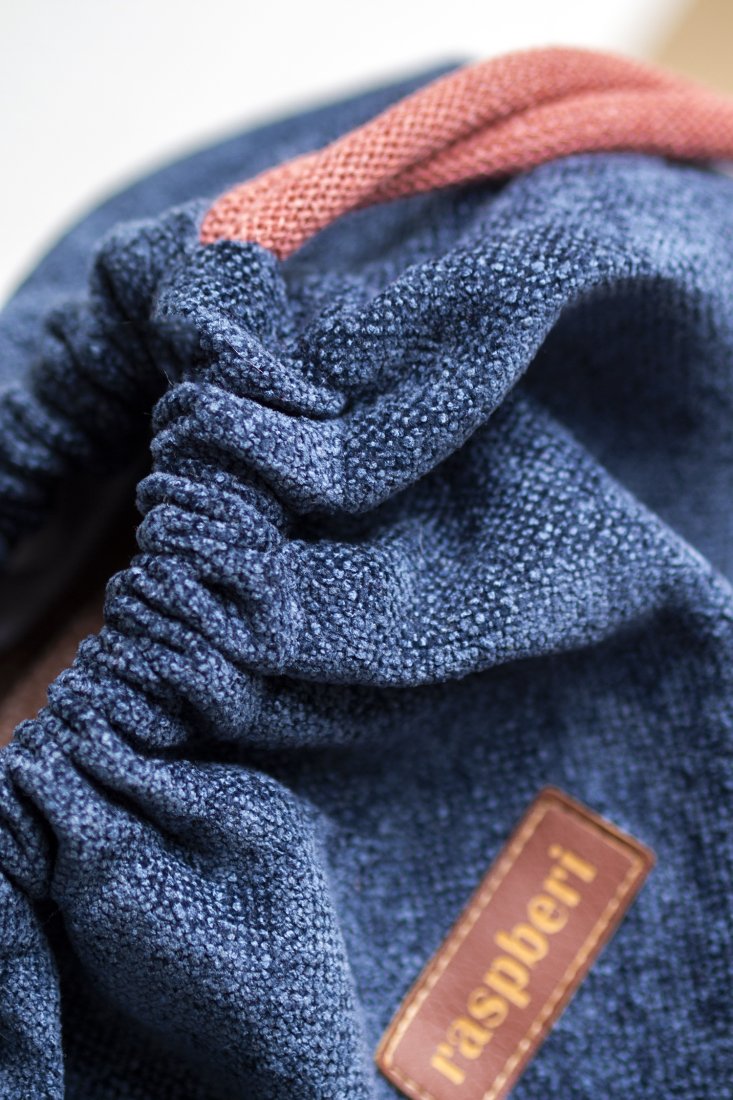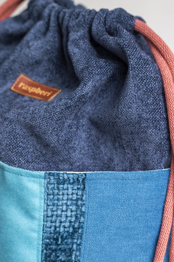 Dół tworzy dodatkowe miejsce na przechowywanie rzeczy - z przodu dwie kieszenie (np. na butelkę), z tyłu jedną duża kieszeń (idealna na tablet). Wykonane z różnych kawałków tkanin tworzących wspólnie ciekawą wizualnie całość.
