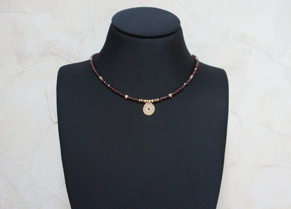 Tagi: #choker, #granaty, #krótki naszyjnik, #stal szlachetna