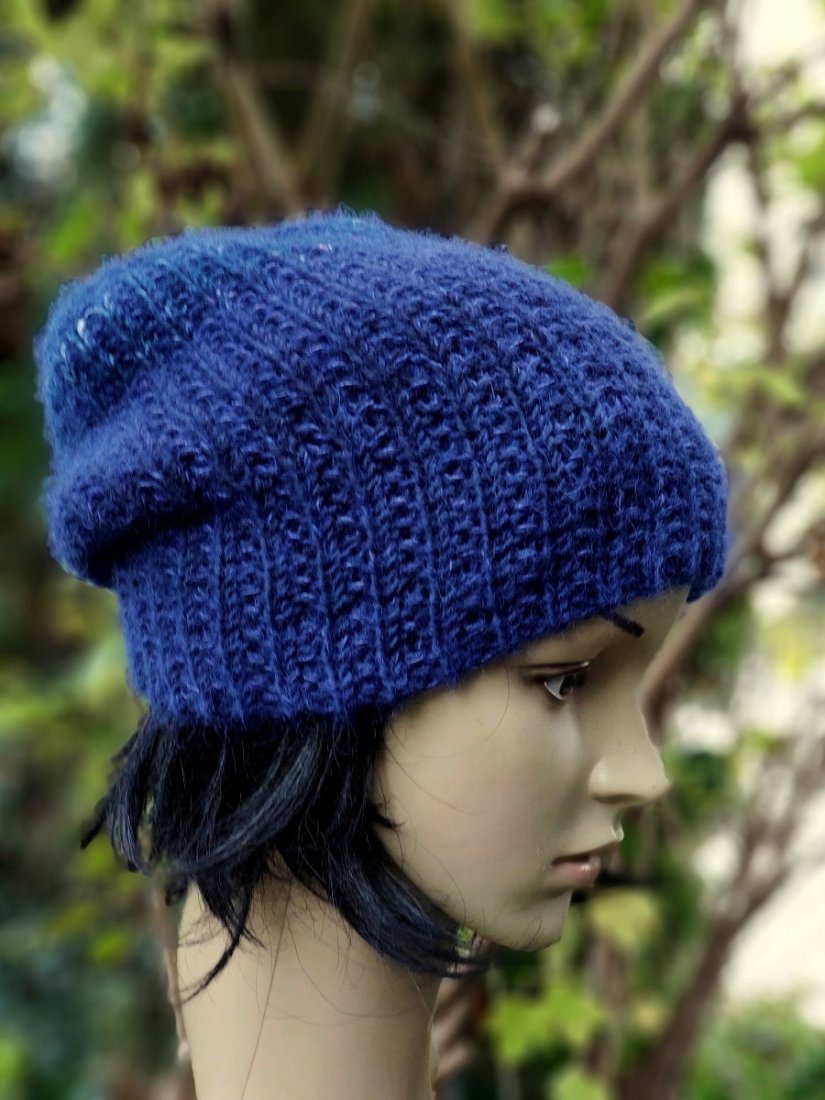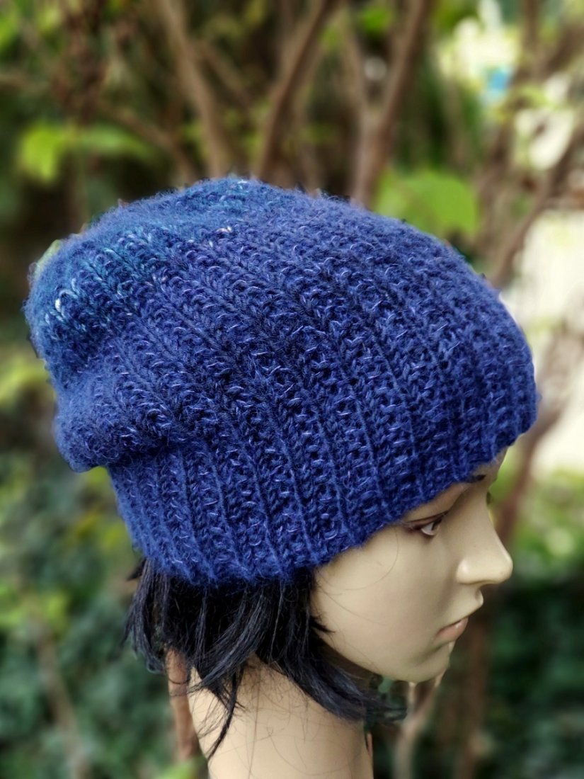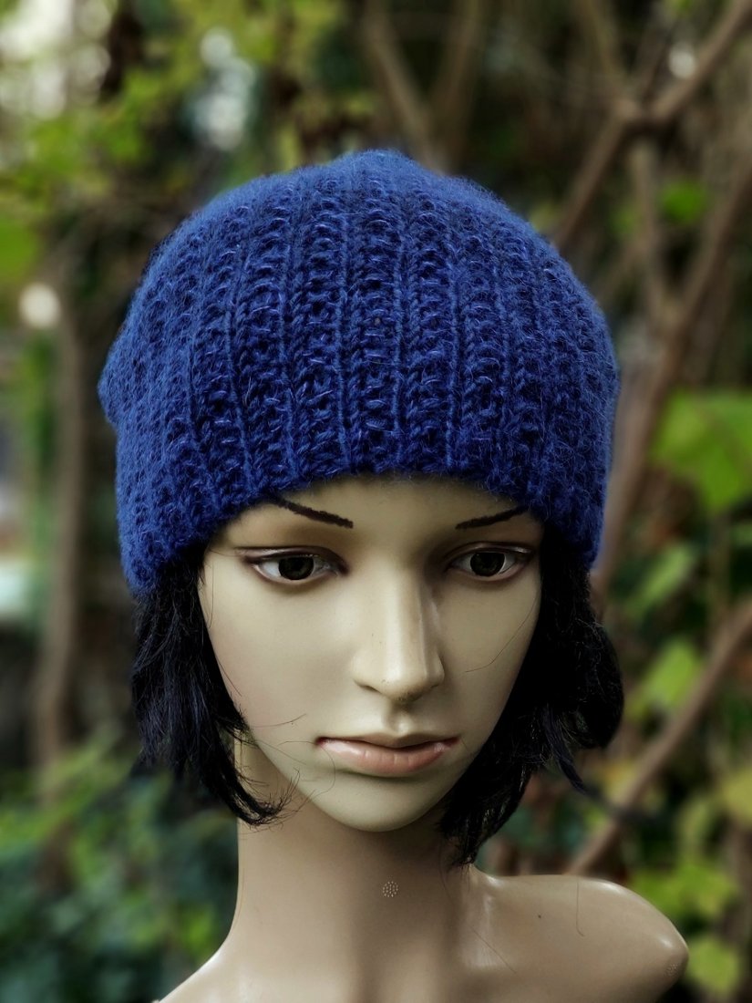 Ciepła, mięsista, miękka i cudowna w dotyku czapka wykonana ręcznie na drutach. Połączyłam cieniutką nitkę 75% kid moher/25% jedwab z włóczką o sprężystym skręcie (100% merino). Czapka bezszwowa, lejąca.