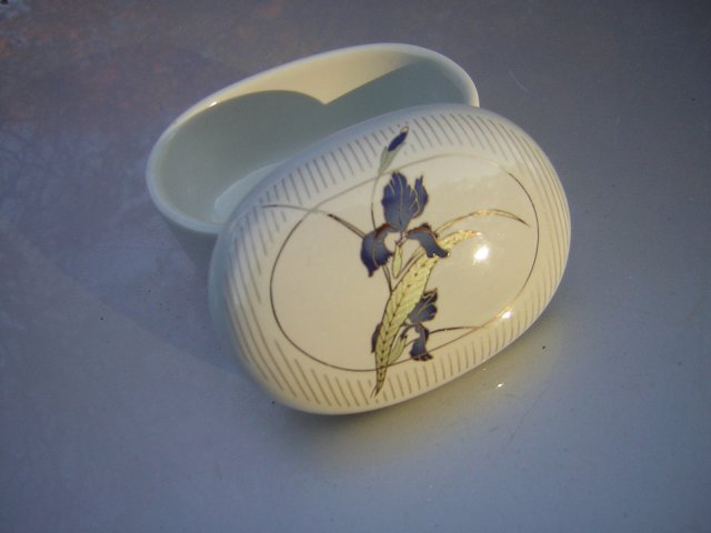 Oryginalne puzderko japońskie. Sygnowane GRAND IRIS OTAGIRI JAPAN . Ciekawe wielce....nad wyraz ciężkie, choć nie wygląda. ..owalna forma, cięższy od góry dół - harmonijne choć niespodziewane... idealnie mieści się w kobiecej dłoni, co uważam ważne jest ; )