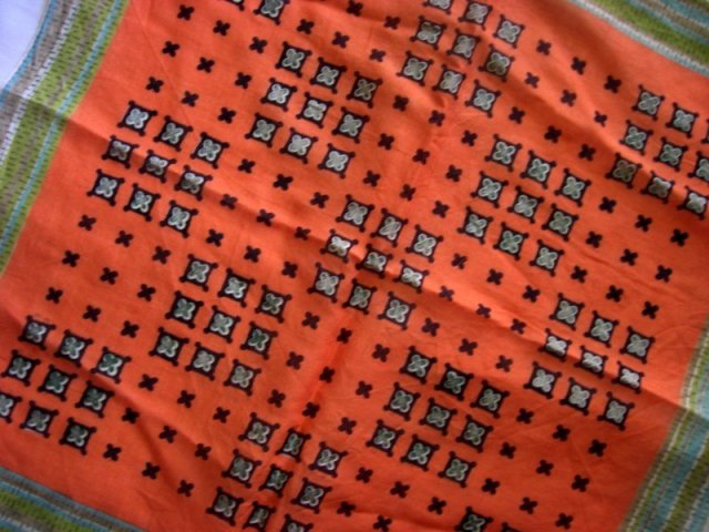 Oryginalna serwetka-chustka z lat 60-tych. Materiał typu batystowego. Super wzór. Super kolory. Zawsze nowoczesne :) 40 x 40 cm. Stan zachowania bardzo dobry.