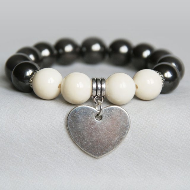 śliczna i niezwykle efektowna bransoletka na solidnej, podwójnej lince elastycznej, wykonana z grafitowego hematytu oraz marmuru w kolorze ecru (kule 12mm) i metalowych elementów w kolorze srebra ... HEMATYT - Ułatwia wchłanianie żelaza. Reguluje nadciśnienie. Pomaga w dolegliwościach kręgosłupa. Budzi radość życia, dodaje odwagi i umacnia wolę.W astrologii przypisany jest znakom Barana i Skorpiona..... PASUJE NA NADGARSTEK 14,5-15,5cm.... BIŻUTERIA ZAWSZE PODRÓŻUJE W OZDOBNYM OPAKOWANIU :-) ... cena dotyczy 1 bransoletki (zdj. 1) - zobacz inne z tej kolekcji! ...