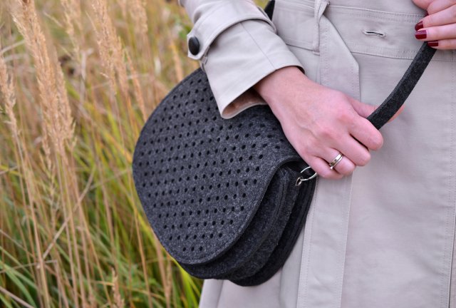Fantastyczna filcowa, grafitowa torebka. Bardzo wygodna w noszeniu i pojemna mimo swoich małych rozmiarów.