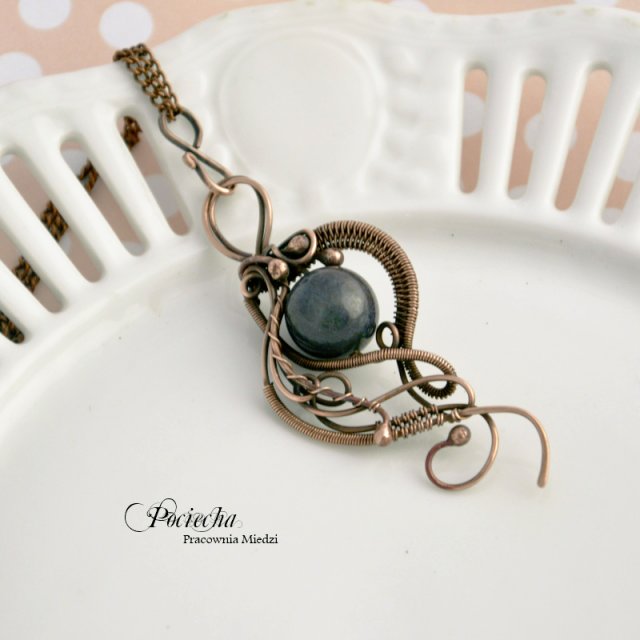 Wisior ma formę klucza. Został wykonany od podstaw ręcznie z miedzi. Ozdobiony kulą agatu..