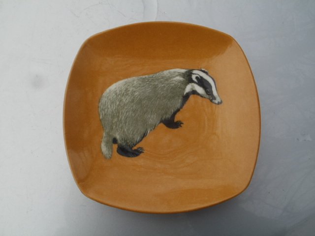 Tym razem nie porcelana...ale oryginalna, niespotykana, ciekawa rzecz godna uchowania. Szlachetna melamina w interesującym designie . Takerzyk - paterka Sygnowana praesidium ornamin Great Britain. Ciekawa, rzadko spotykana półgłęboka graficzna forma, musztardowe tło i naturalne barwy zwierzątka ;) Wykończenie satynowe. Góra około 13 x 13 przekątna 14,5 cm dół 7 wys. Około 2 cm. Stan zachowania bardzo dobry minus. Minimalne ślady użytkowania.