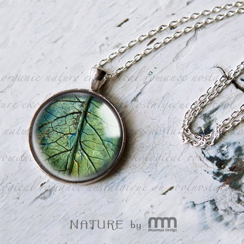 Naszyjnik Green Leaf to romantyczne, nostalgiczne i kobiece malutkie dzieło sztuki. Obrazek pod szkiełkiem to autorska ilustracja. Piękny letni nasyzjnik :)
