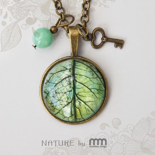 Naszyjnik Green Leaf to romantyczne, nostalgiczne i kobiece malutkie dzieło sztuki. Obrazek pod szkiełkiem to autorska ilustracja. Piękny letni nasyzjnik :)