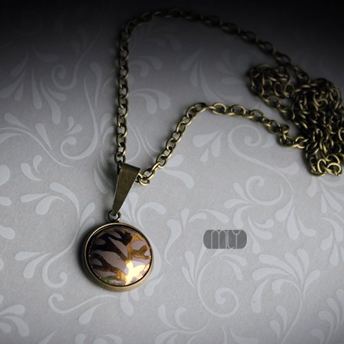 Okrągły ceramiczny wisior, ręcznie wykonany z mocno spieczonej gliny kamionkowej, szkliwiony efektowną mieszanką błyszczących szarobrązowych szkliw z efektem plamek, zawieszony na łańcuszku w kolorze starego złota. Średnica zawieszki ok. 1,4cm, długość łańcuszka 2x20cm. Polecam