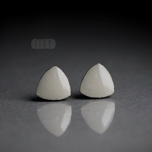 Ceramiczne kolczyki w formie sztyftów, ręcznie wykonane z delikatnej gliny kamionkowej, jednostronnie szkliwione mieszanką szarych szkliw z efektem plamek i subtelnym połyskiem, na antyalergicznych sztyftach w kolorze srebrnym.Średnica ok. 10mm.. Polecam