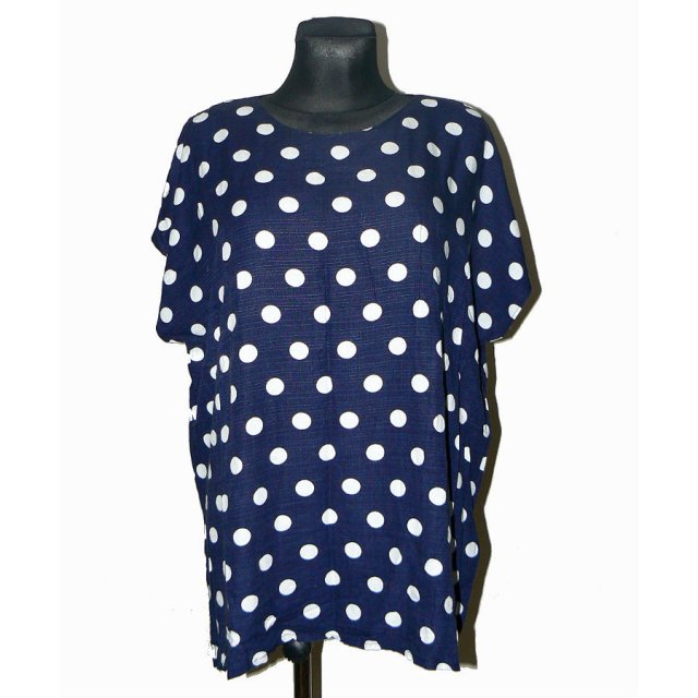 Ciemno granatowa bluzka w białe grochy. Uszyta z miękkiej mięsistej bawełny.