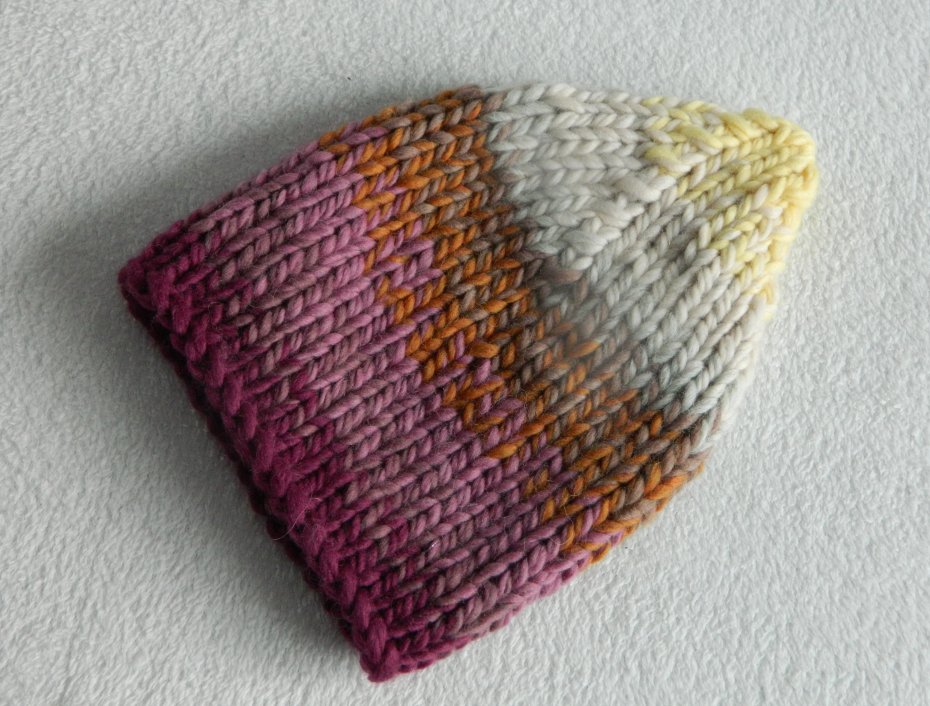 Wydziergałam ją z dobrej gatunkowo 100% owczej wełny. Jest mięsista, bezszwowa i jak na wełnę setkę przyjazna w kontakcie ze skórą.