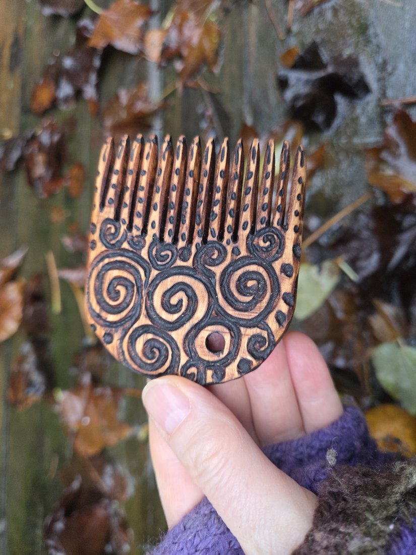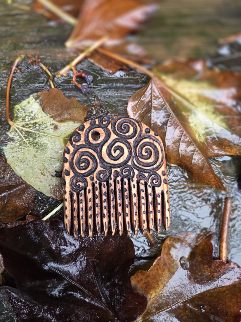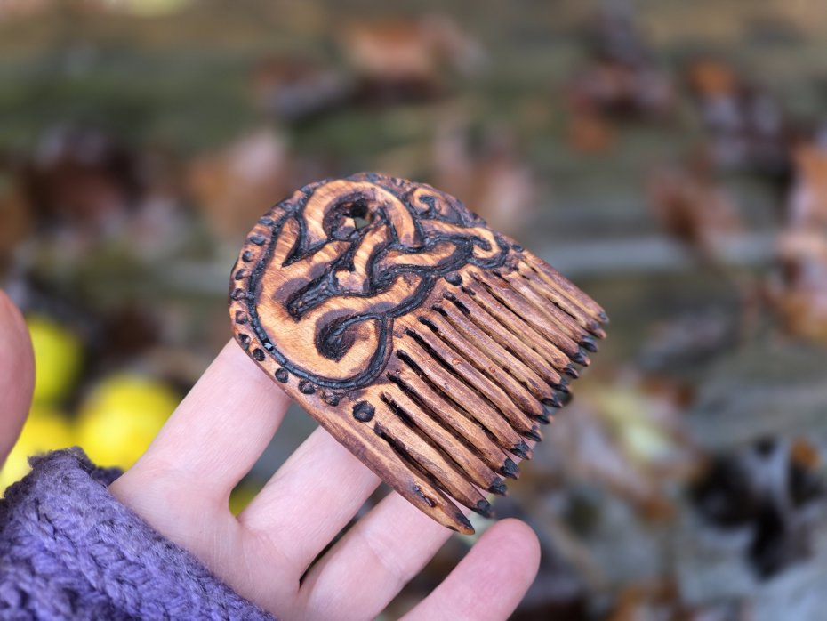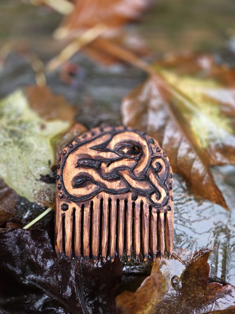 Grzebyk wykonany z brzozy. Inspirowany znaleziskami z epoki wczesnego średniowiecza, sprawdza się świetnie jako grzebień męski do brody. Grzebień ma 6,5 cm szerokości i 7,5 cm długości.