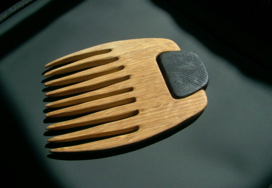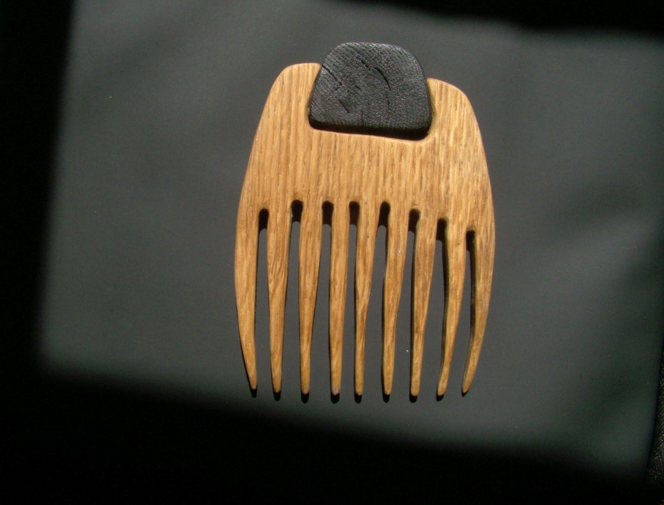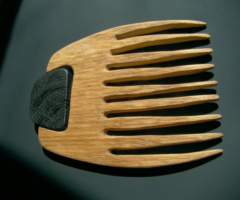 Spory grzebień dębowy z elementem z całkowicie czarnego dębu ( patrz inne moje oferty z czarnym dębem ).