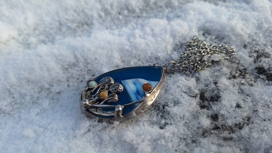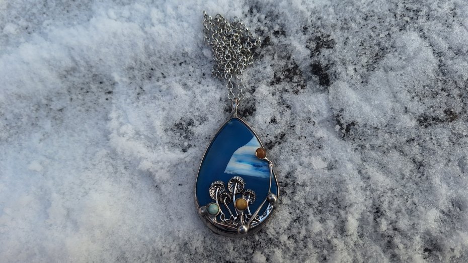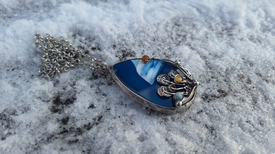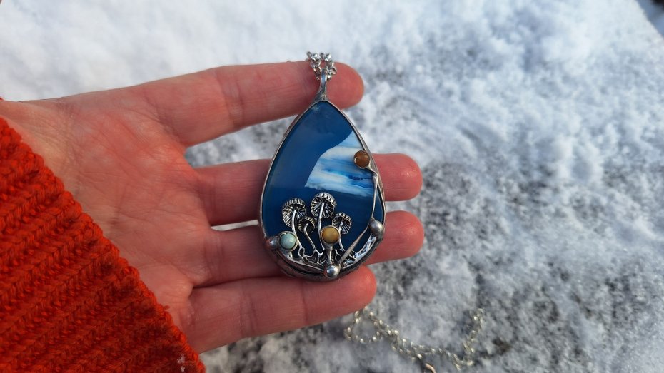 Tagi: #agat, #niebieski wisiorek, #wisiorek z grzybkami, #wisiorek z kamieniem