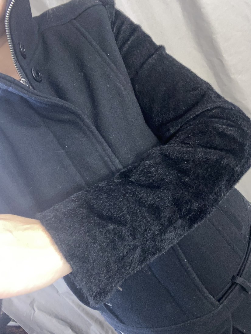 Guess. Płaszczyk z wełny 53%, poliestru 28%, nylonu 10%, akrylu 7%, bawełny 1%, wiskozy 1%, rękawy z nylonu 100% (sztuczne włosie), podszewka z satynowego poliestru.