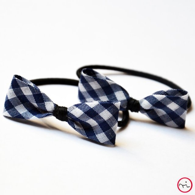 Dwie gumeczki do włosów z kokardkami w drobną granatową kratkę dla małej księżniczki