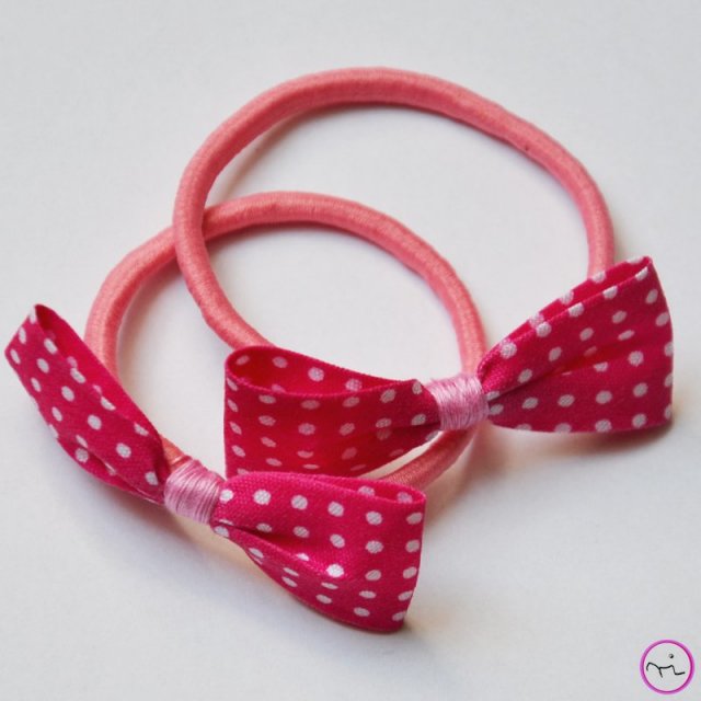 Dwie gumeczki do włosów z różowymi kokardkami w kropki dla małej księżniczki