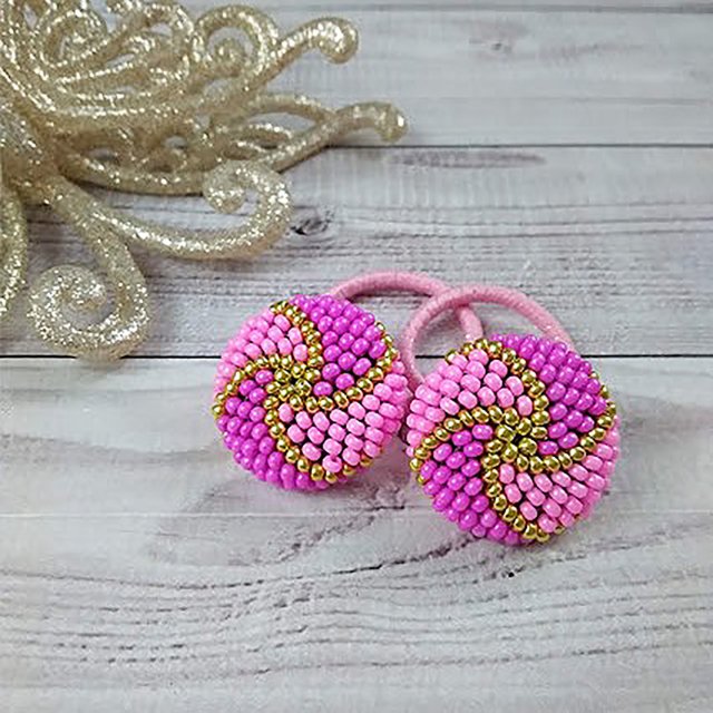 Guzik do opasek do włosów dla małych dzieci Uchwyt do kucyka Spiralna opaska do włosów Zestaw 2 opasek do włosów z koralikami. Wykonany ręcznie.