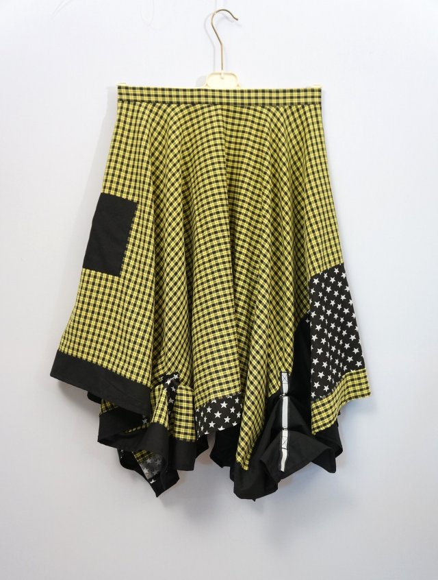 SPÓDNICA Z 3 RÓŻNYCH MATERIAŁÓW; PRAWDOPODOBNIE MIESZANKA BAWEŁNY I POLIESTRU ( BRAK METKI ZE SKŁADEM). Z OGONAMI KTÓRE MOŻNA PODPINAĆ W DOWOLNY SPOSÓB ZA POMOCĄ DUŻYCH, SREBRZYSTYCH ZATRZASKÓW. NASZYTA 1 CZARNA KIESZONKA. ZAPIĘCIE NA SUWAK NASZYTY NA ZEWNĄTRZ....NOWA.