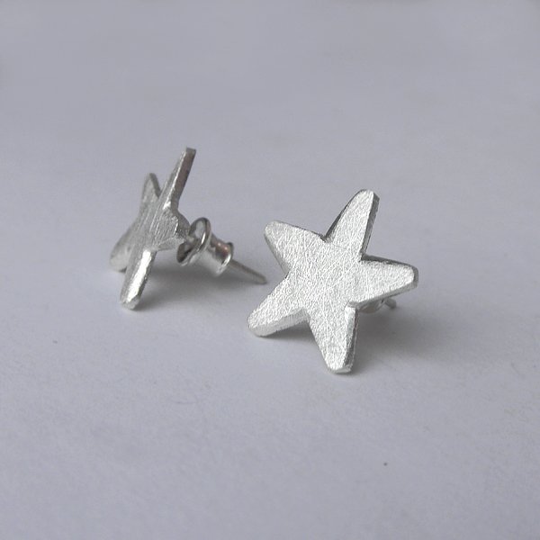 Kolczyki na sztyftach wykonane są ze srebra. Srebro - próby 0,925, zmatowione, Wysokość 17 mm. Szerokość 17mm. Waga - ok. 3g . Termin realizacji zamówienia to 1-2 dni