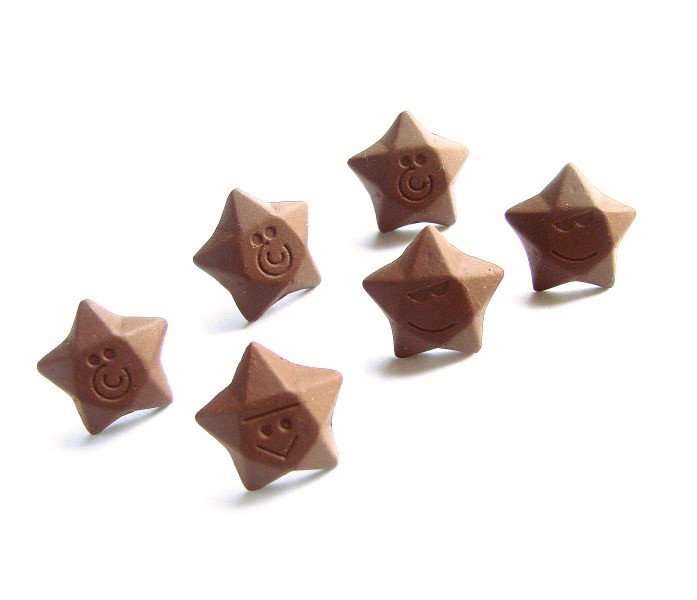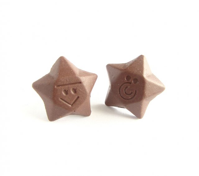 Słodkie kolczyki sztyfty czekoladowe gwiazdeczki Milky Way wykonane ręcznie z masy fimo. Wielkość ok 2 cm. Sztyfty w kolorze srebrnym, zatyczki w zestawie. Cena za parę