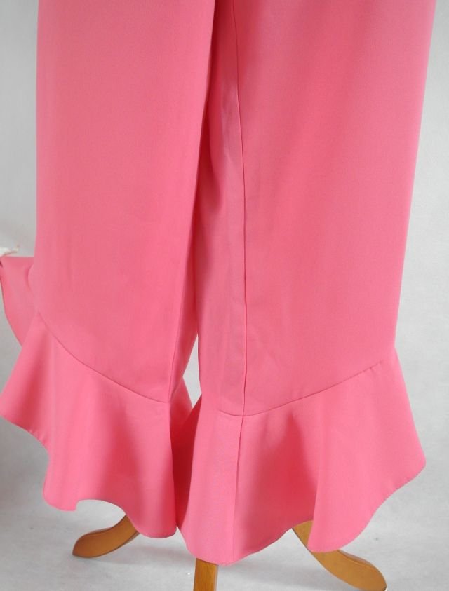 słodki kolor malinowego sorbetu.Dwie wsuwane kieszonki na bokach no i te falbany.. Zdjęcie tego nie oddaje, ale one się pięknie prezentują a zwłaszcza do obcasów.świetne na wesele, imprezy taneczne. Polecam!