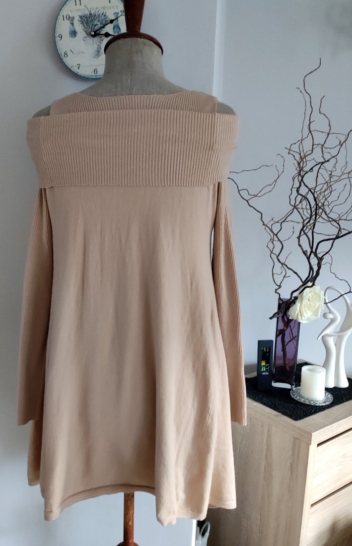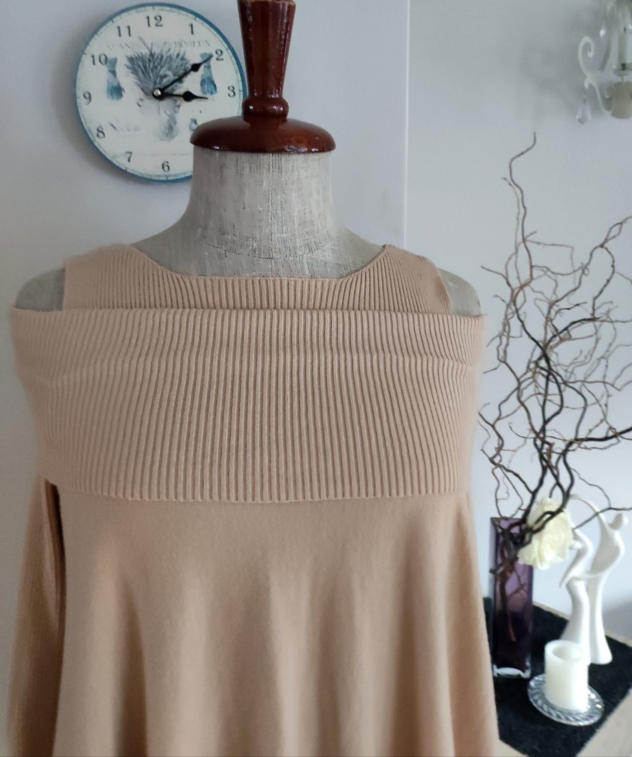 Miękki i bardzo przyjemny dla ciała sweterek/tunika w kolorze ciepłego beżu.