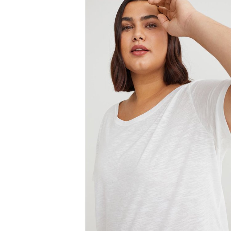 H&M BASICS klasyczna koszulka T-shirt z lekkiego, miękkiego dżerseju z mieszanki bawełny i modalu. Szeroki dekolt, zaokrąglony dół.