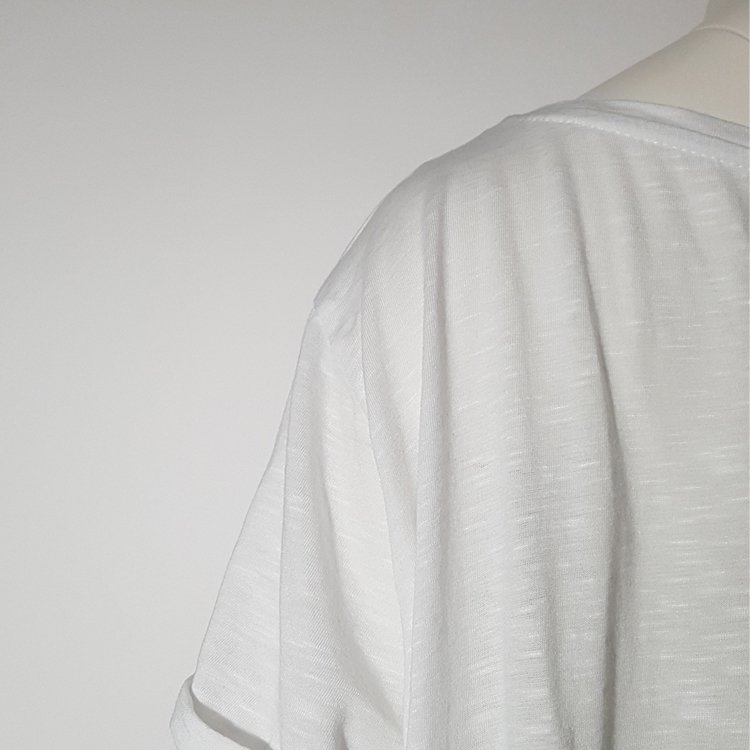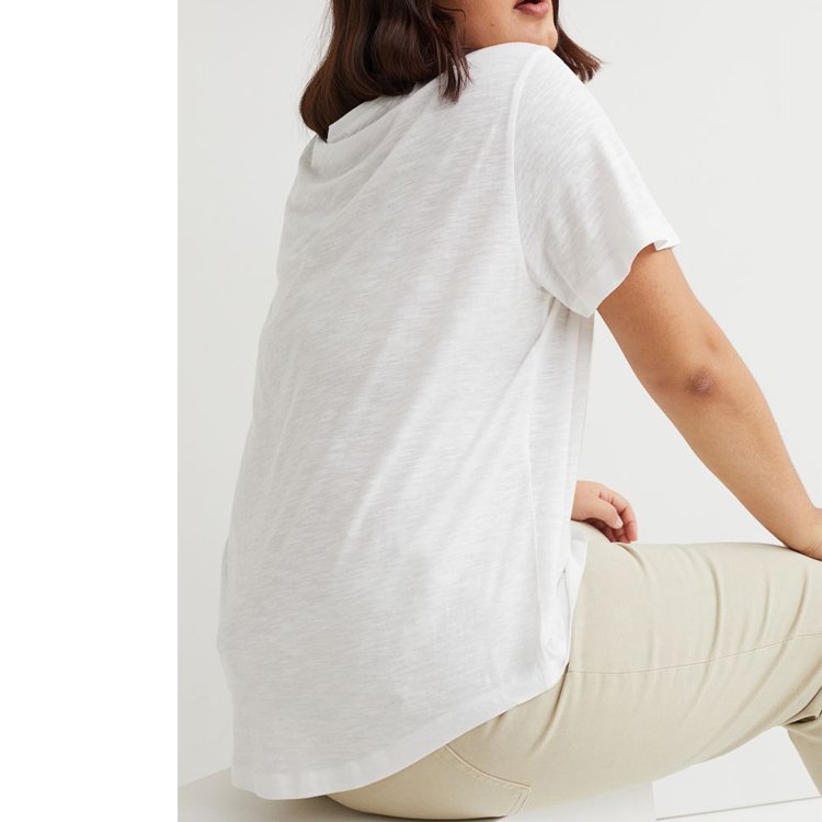 H&M BASICS klasyczna koszulka T-shirt z lekkiego, miękkiego dżerseju z mieszanki bawełny i modalu. Szeroki dekolt, zaokrąglony dół.