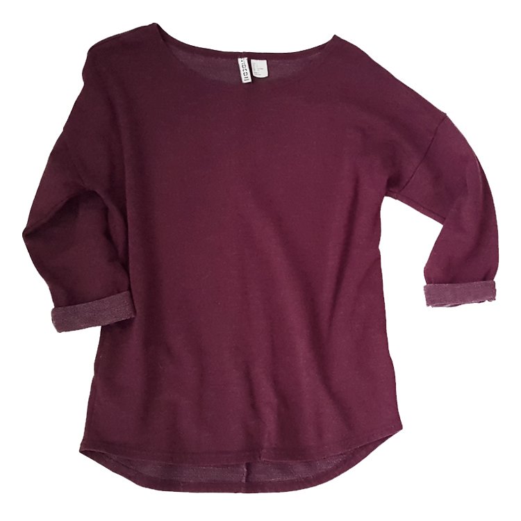 Bluza dresowa, dekolt okrągły, linia ramion obniżona, rękawy 3/4 wykończone wywinięciem. Komfortowy basic na co dzień. Dzianina melanżowa w kolorze rozbielonego buraczanego fioletu.